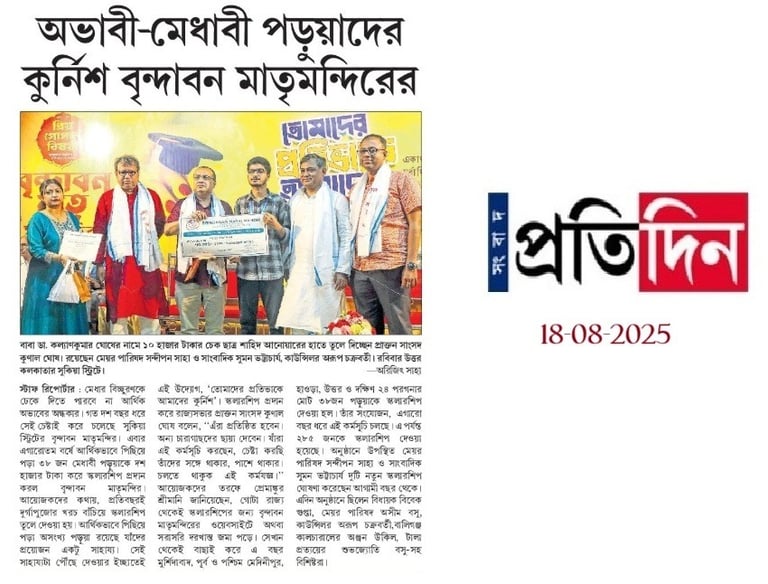 Scholarships awarded annually during the month of August before Durga Puja festival celebrations.